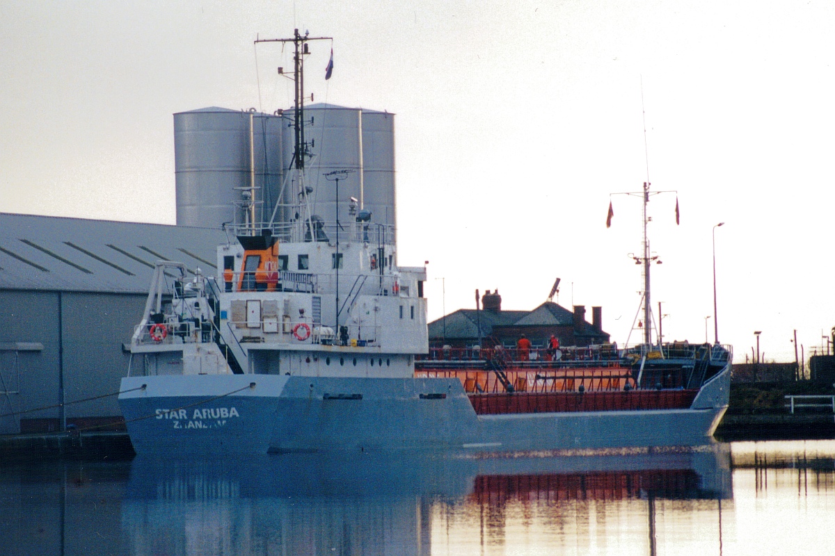 STAR ARUBA alongside in the Barge Dock 2000 ish.
