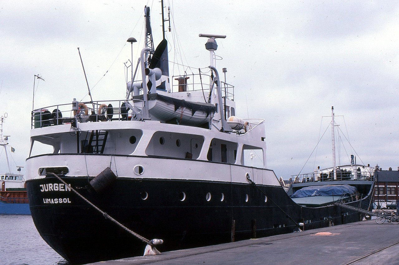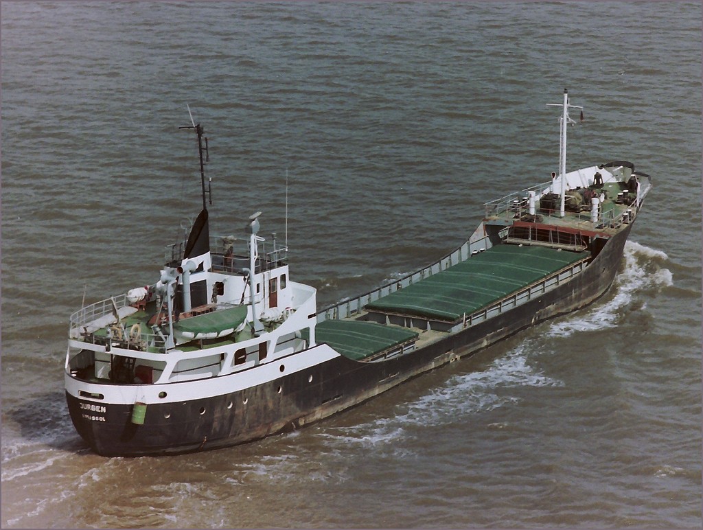Not at all a lucky ship if I recall correctly! That distinctive funnel insignia had, indeed, been derived from the fact she had previously sunk/stranded as the JURGEN (although I do not have details to hand). Suffice to say her demise (as recorded by Miramar) was: collision (KOTOR) 51.49N/2.30E 5.3.86 [Boston-Antwerp, grain]