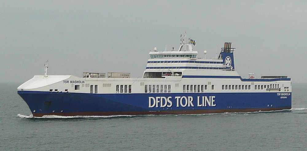 The sun was going down by the time MAGNOLIA SEAWAYS passed us and Spurn Point at the same time. She is on the Gothenburg service, arriving Immingham Outer Harbour at about 2200, and leaving for Gothenburg at 0400 the following morning. She is 32289gt, built 2003 by Flensburger Schiffbau-Ges mbH & Co KG, Flensburg (721) Ex -Tor Magnolia in 2011.
