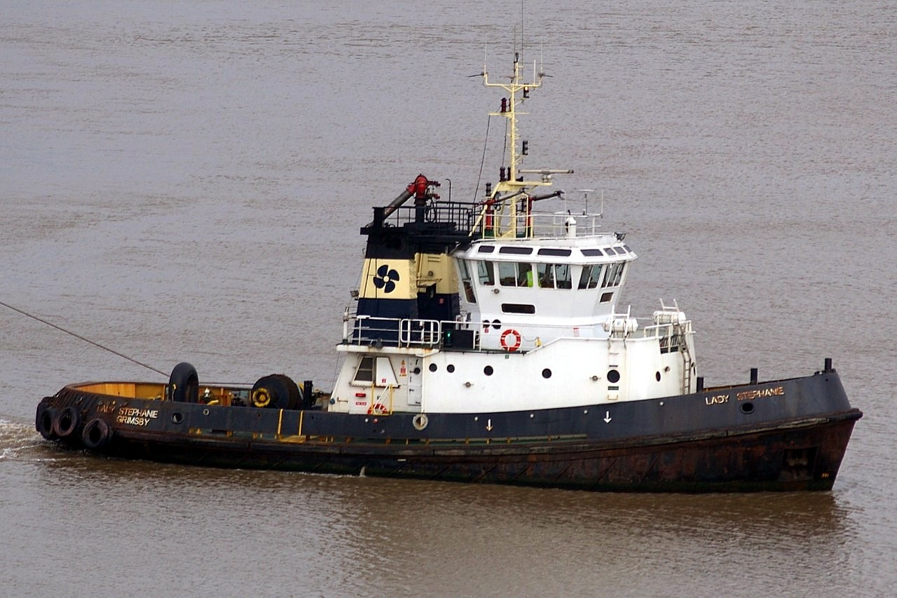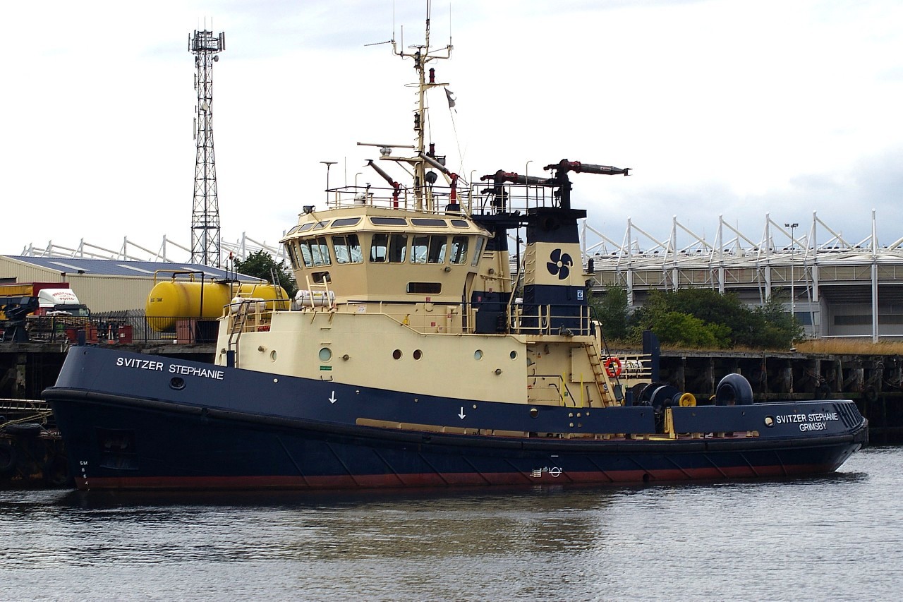 The SVITZER STEPHANIE, formerly the Lady Stephanie, is registered in Grimsby.