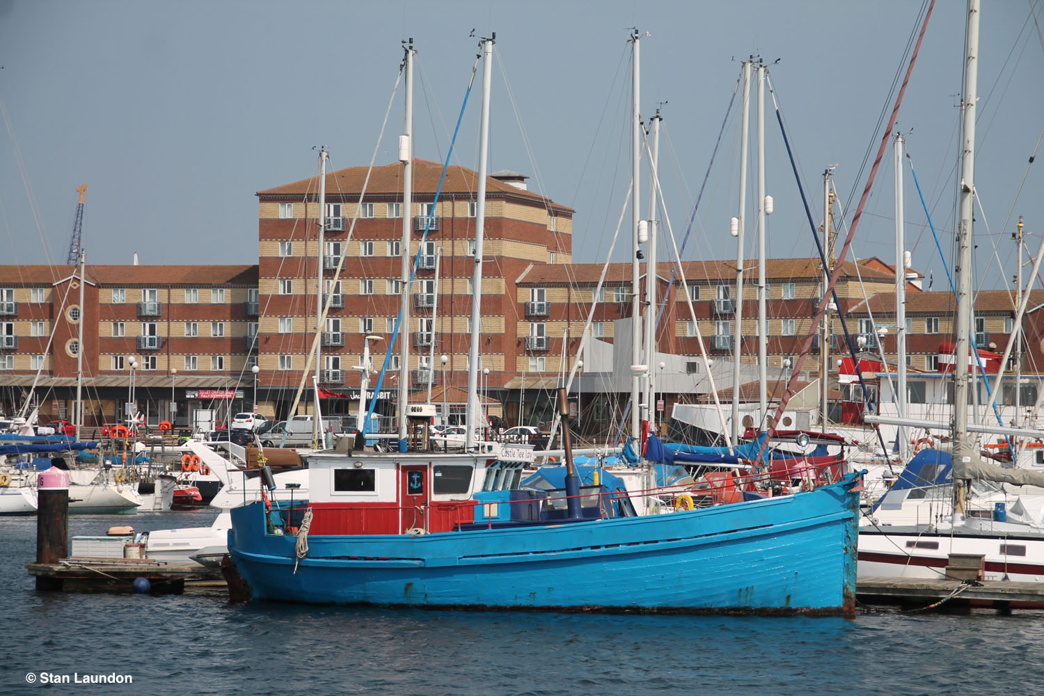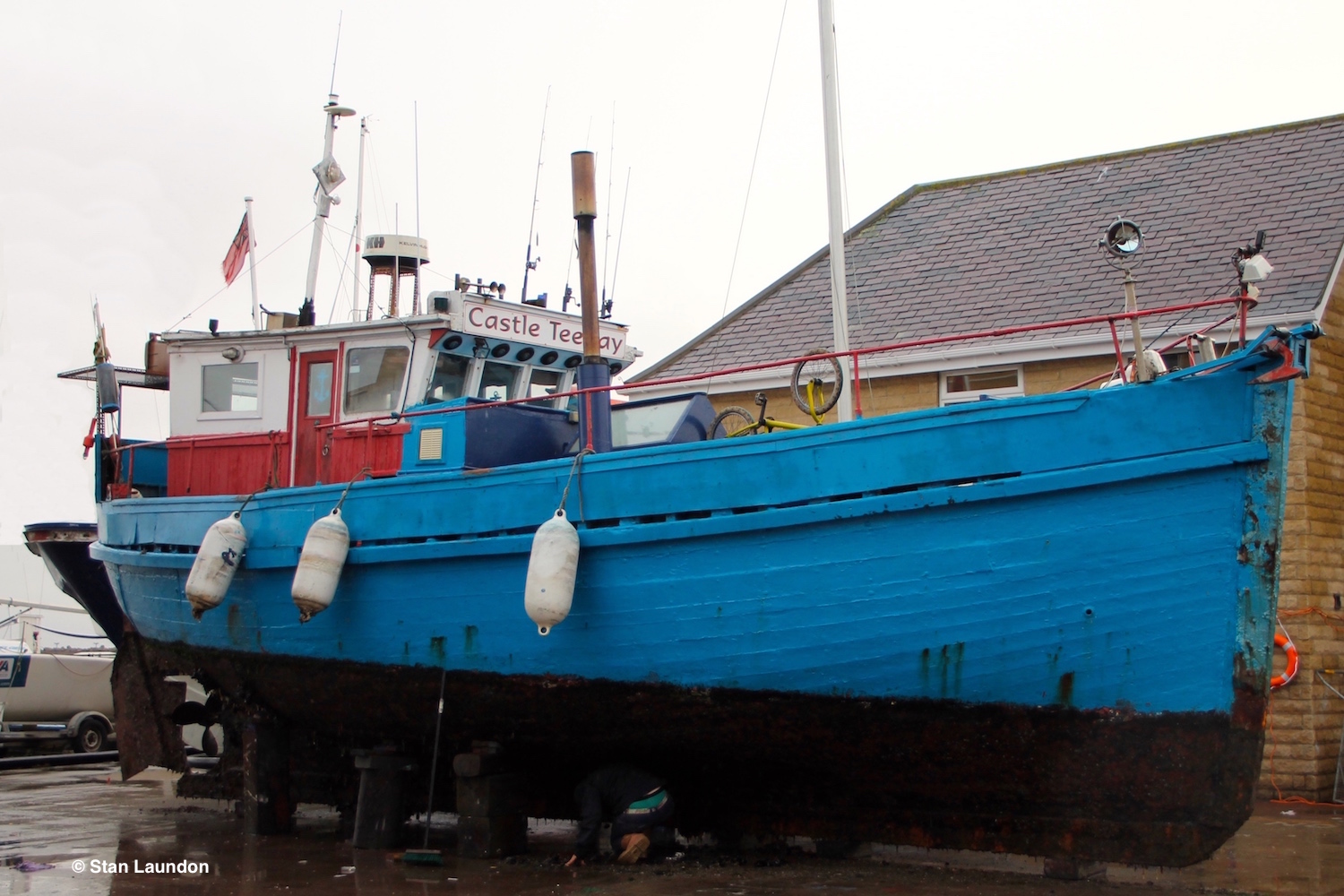 Castle TeeJay built at Macduff in 1934. L.oa. 39.9 ft. Br. 14 ft. 13.32 gt. 13.32 nt. SD.11. Sceptre BH.38. Owners Jack Liddell,Blyth. Sold to North Shields 1965. Renamed Castle Dawn BH.117. Owner Ollie Allcock. Out of fishing she was in Albert Edward Dock. Stripped to the bare deck. She then turned up at Leamington. In late 1990s. Chapter about her in Peter Mortimers book, Last of the Hunters