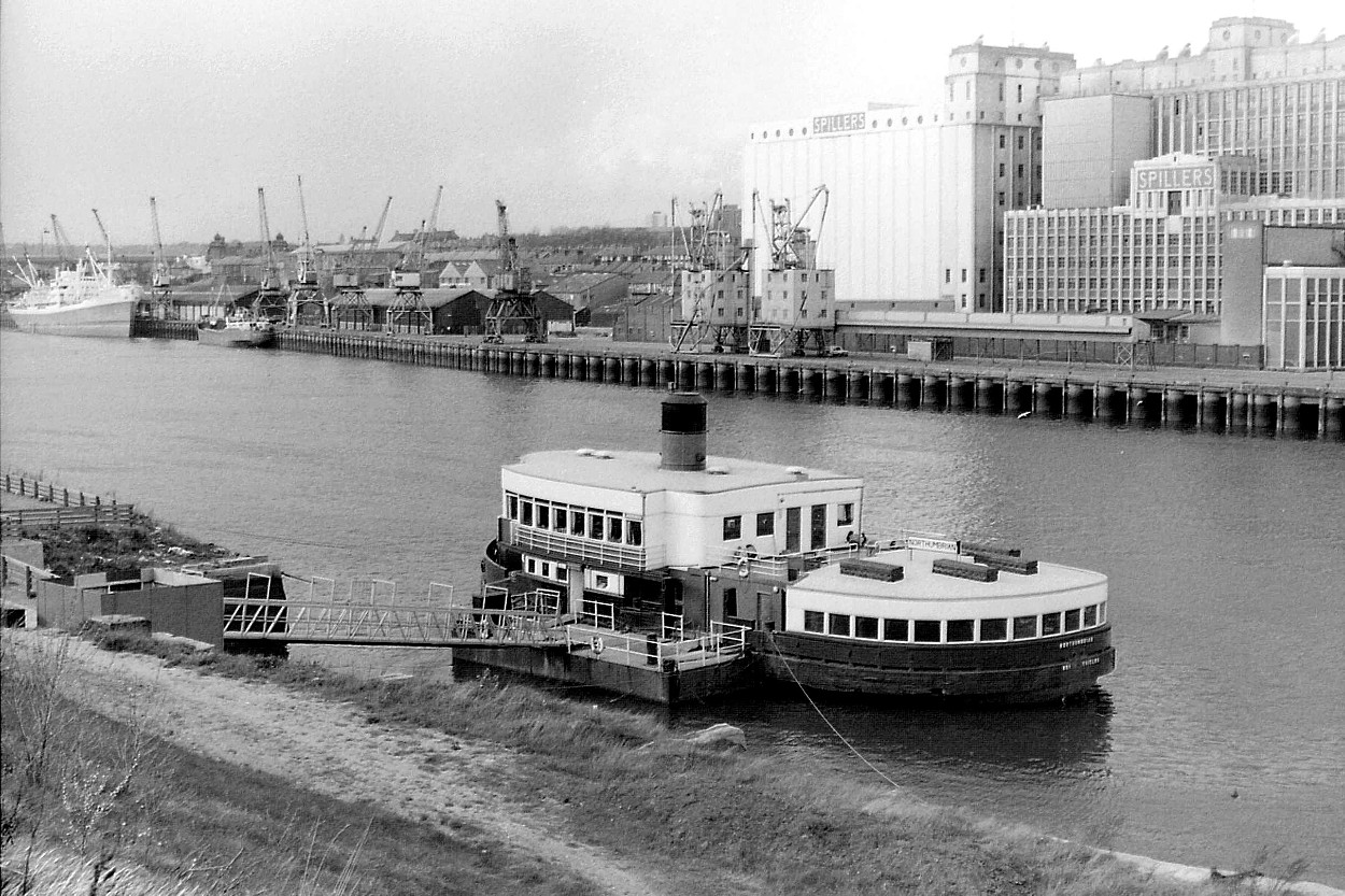 The Tyne Improvement Commission took delivery in 1930 of what was to be the last steam driven cross-river ferry serving North And South Shields. NORTHUMBRIAN served faithfully as such for forty two years until her withdrawal in April 1972. Until 1967 she carried vehicles as well as foot passengers but with the opening of the first vehicular tunnel under the Tyne in that year it was inevitable that she would no longer be called upon to carry cars/vans etc.