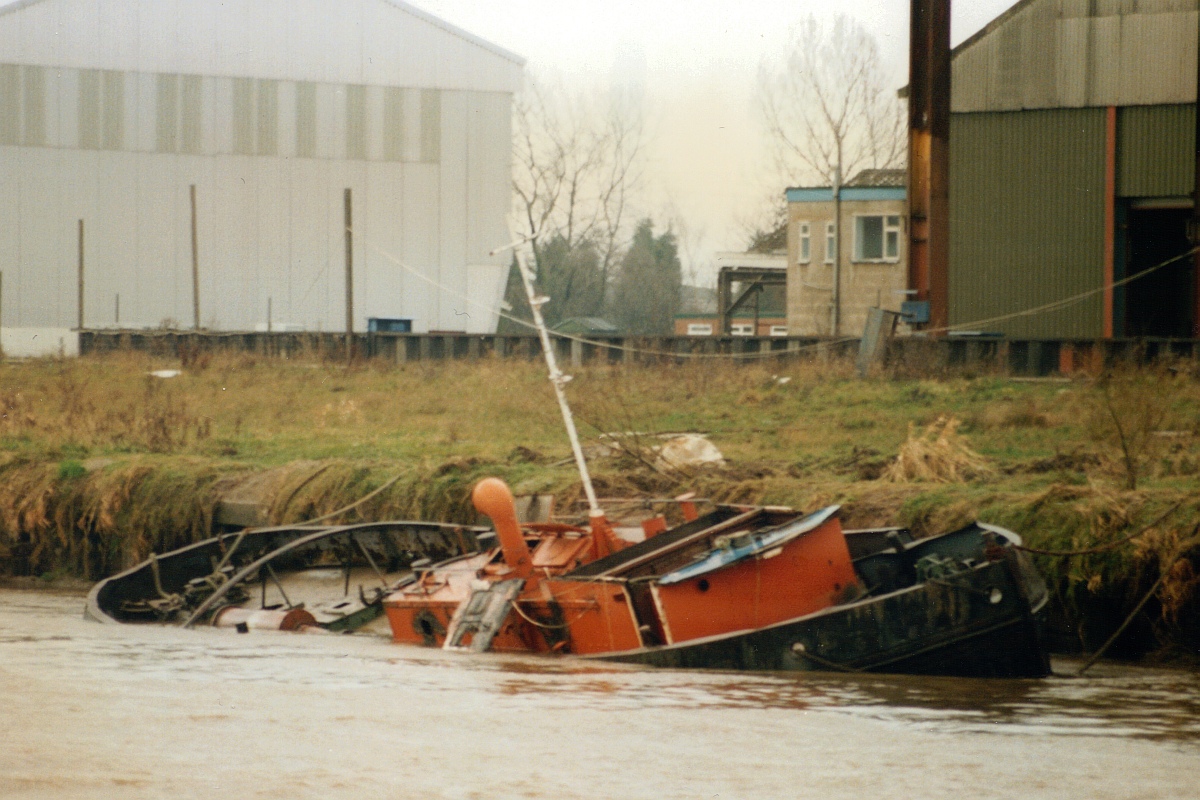 1997 spotted partially submerged on the river bank at Selby, next to the site of the old Cochrane shipyard;