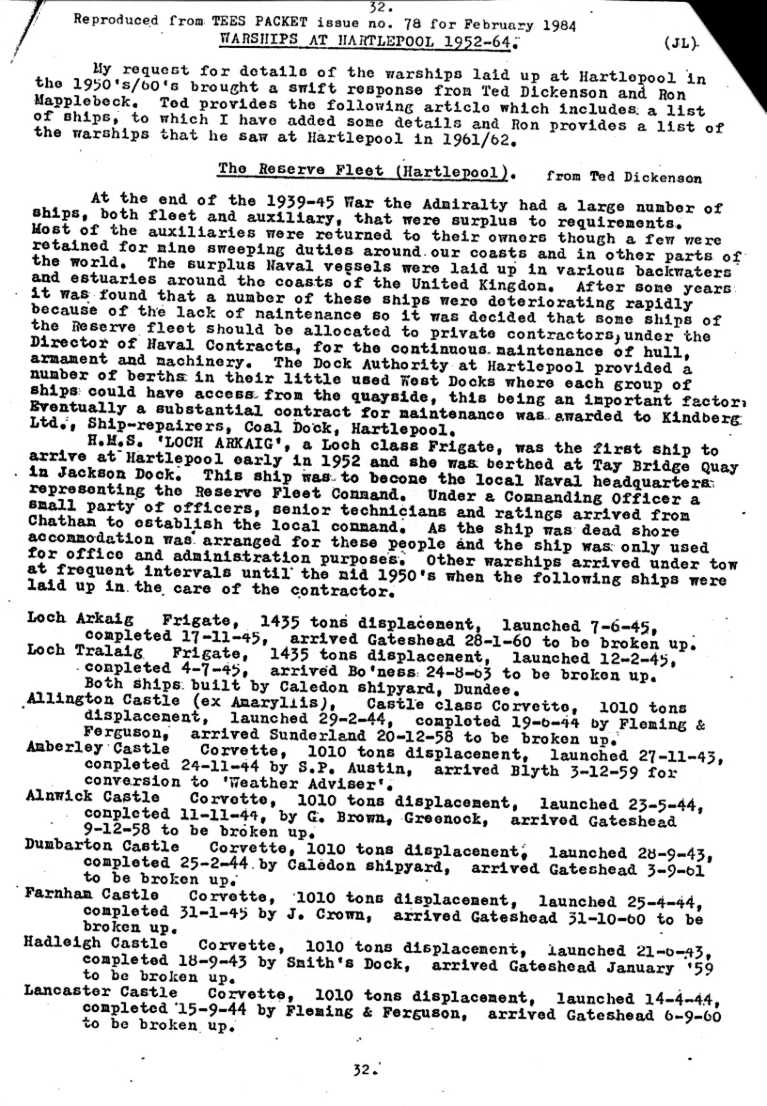 This subject featured in a series of articles in TEES PACKET, journal of the Teesside Branch of the World Ship Society, between 1984 and 1991 and various contributors provided comprehensive details of the reserve fleet over the years. These subsequently formed a permanent feature on my TEESSHIPS website but since I have failed to re-submit this features on the website then NEM is as good a place as any to show them.