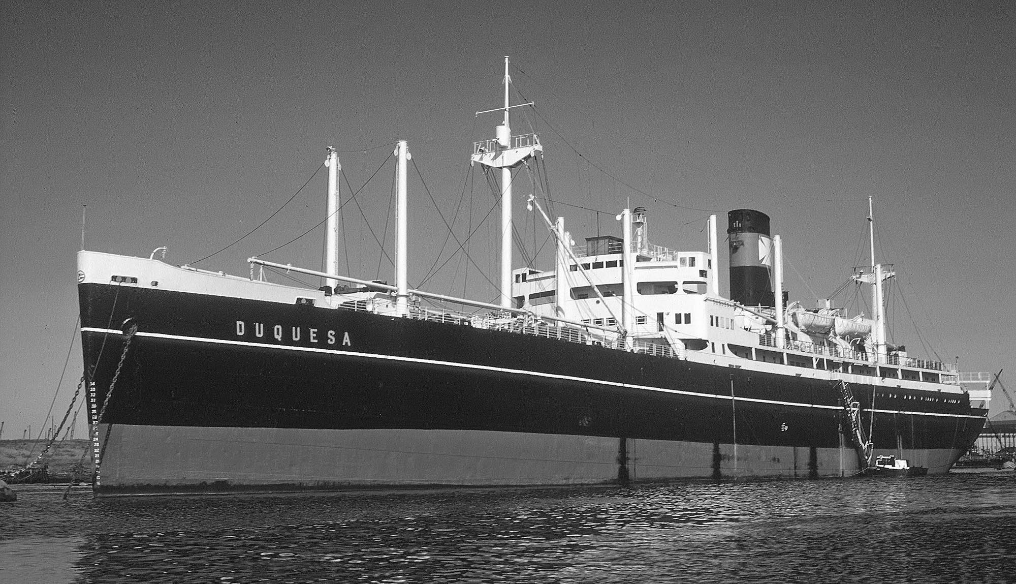 DUQUESSA, built on the Tyne in 1949 by Hawthorn Leslie & Co. Ltd., is looking quite smart having just completed a spell in Brigham & Cowans dry dock at South Shields. She served four more years with Furness Houlder Lines before arriving for demolition at Spezia, Spain, on August 14th 1969