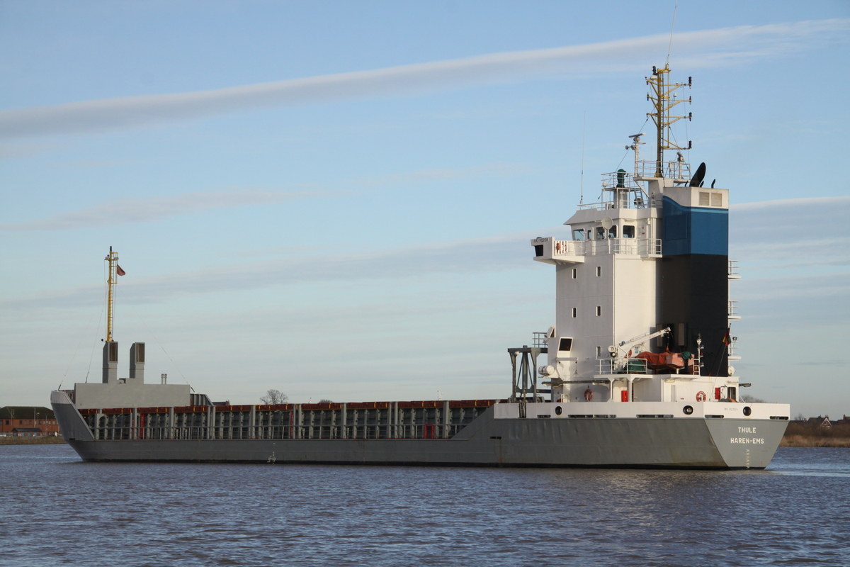 The German-flagged THULE approaching Ocean Lock Goole this morning. Her last port of call was Tahkoluoto (Pori), Finland. She began her approach on Thursday but only got as far as Blacktoft before shifting to Goole on this morning's tide.