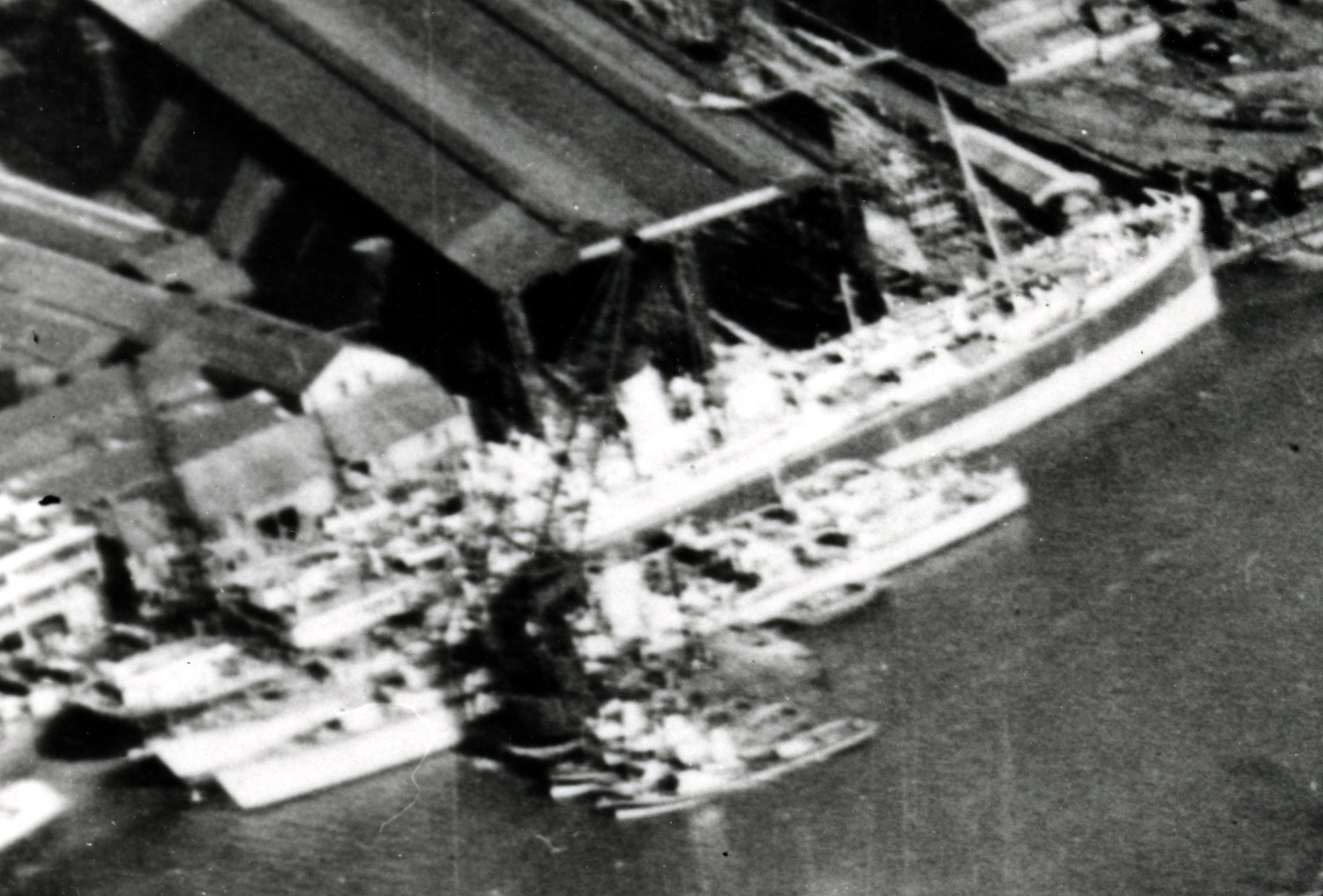 Sean, a very helpful observation which proves we did not look closely enough at this trio of vessels .... the two inside seem to be part-completed cargo vessels, there is a flat section in the centre one (just below the forward funnel of the white ship) which may be the base for her bridge structure. The inner one looks rather 'worn' so may be a repair job.