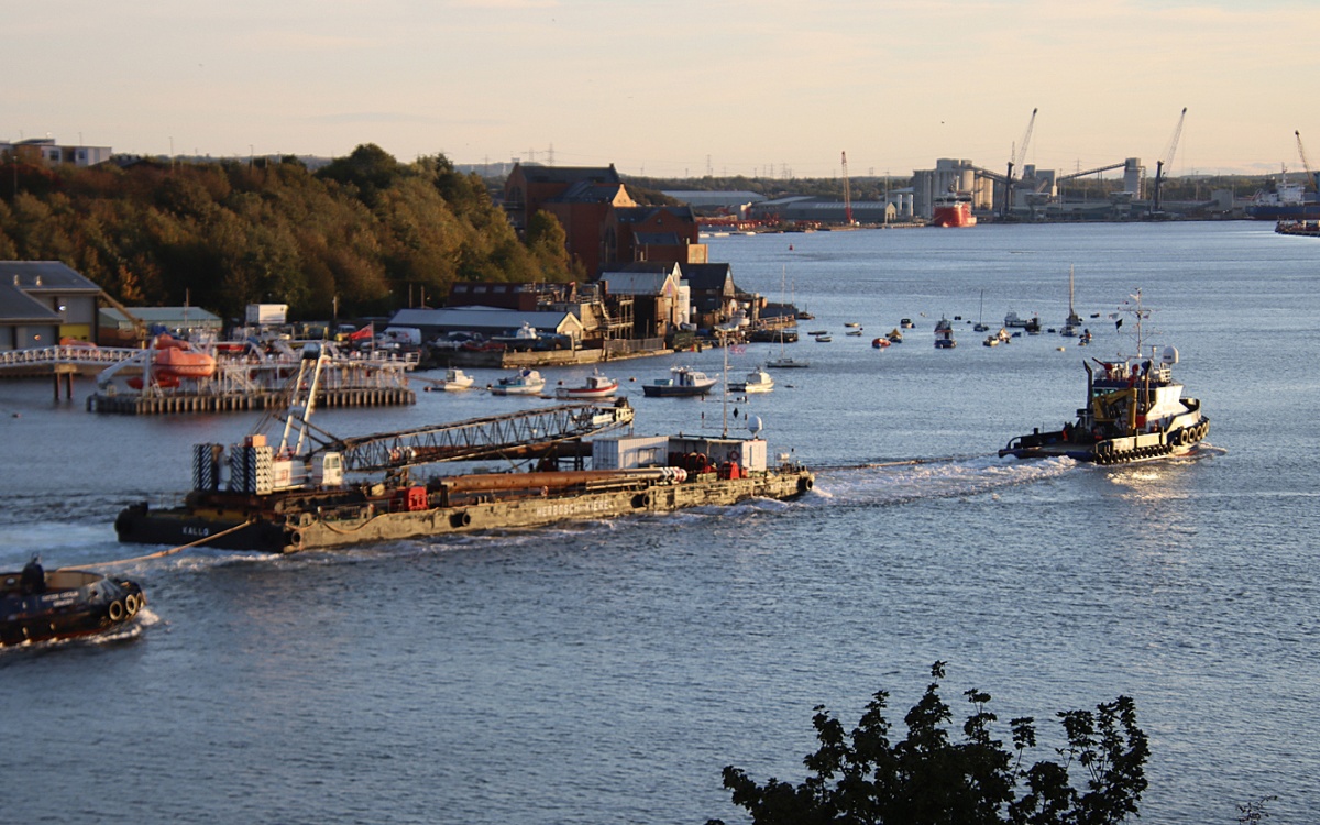 ELDA & crane barge WAASLAND inwards to the Tyne 09/10/2025. Photos by Richard Athey.