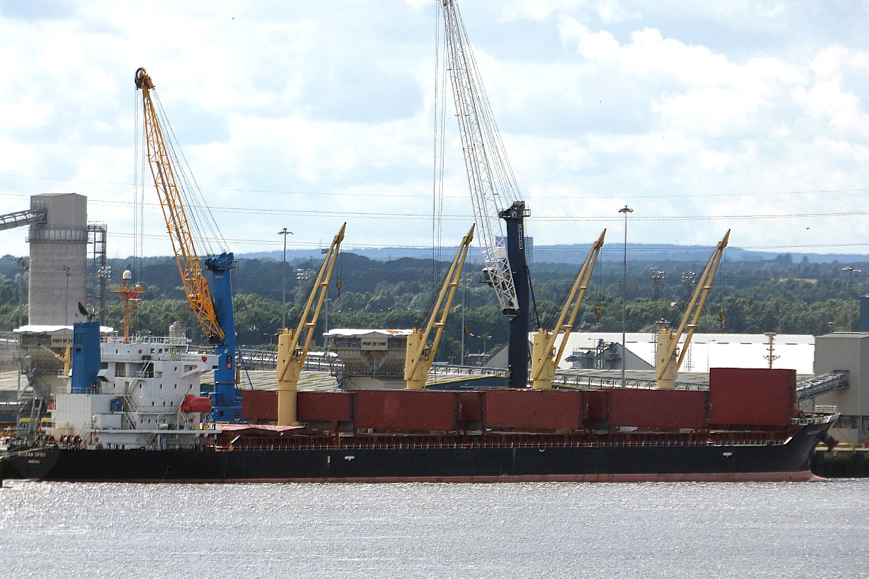 AEGEAN SPIRE tucked away in the corner on Riverside Quay 09/08/2019. Two very long range photos.