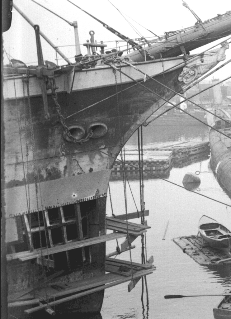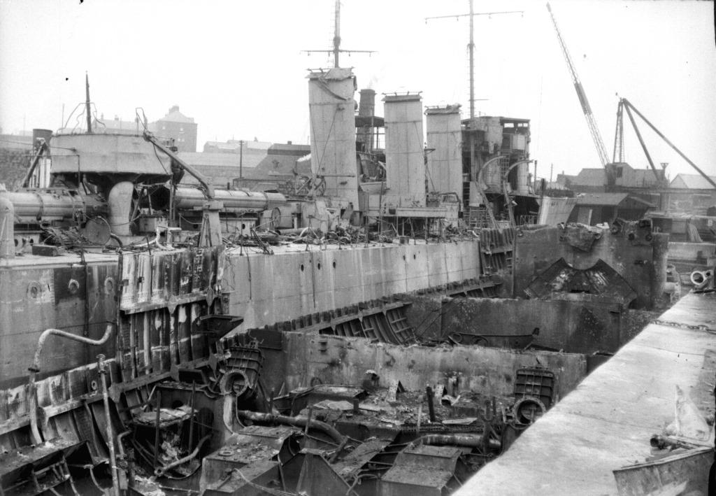 If the photo below shows, may be the Stb side of H 60, the ship in the centre, what little is left, would appear to have two large SW inlets for condenser cooling.