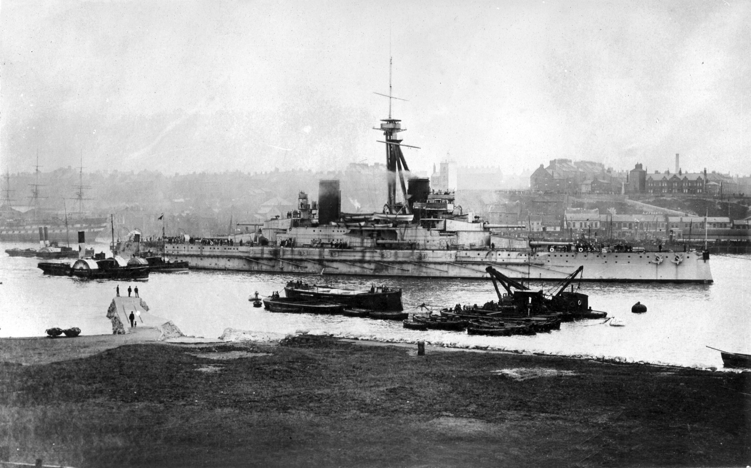 Brazilian battleship MINAS GERAIS out from Armstrong, Whitworth at Elswick 14/09/1909 on trials just passing Wellesley.