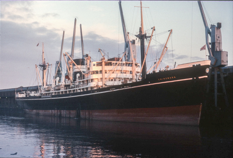 British India's Chindwara, completed by Swan Hunter & WR in 1950, in Prince's Dock, Glasgow on 13 August 1970.