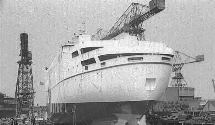 One of my early sightings on the Tyne in February 1961 of her nearing completion.