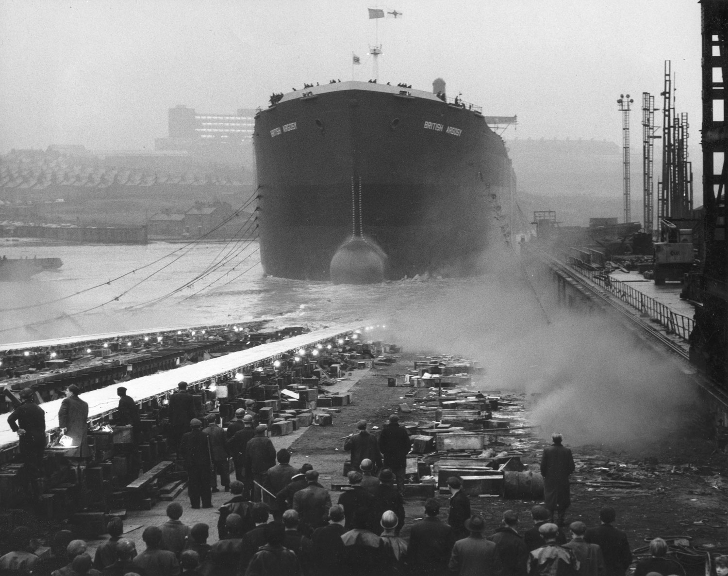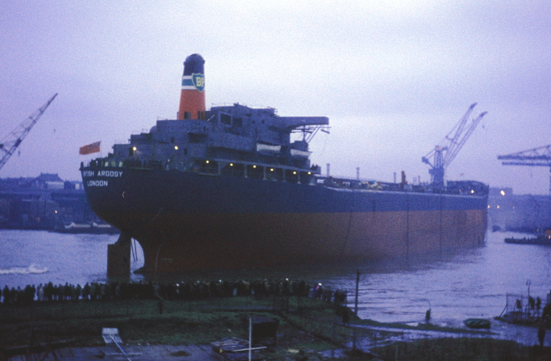 Unusually for a large tanker British Argosy returned to the river after trials, as a result of the seamen's strike that took place in May 1966. I think that she became the largest vessel to enter the river up until then.