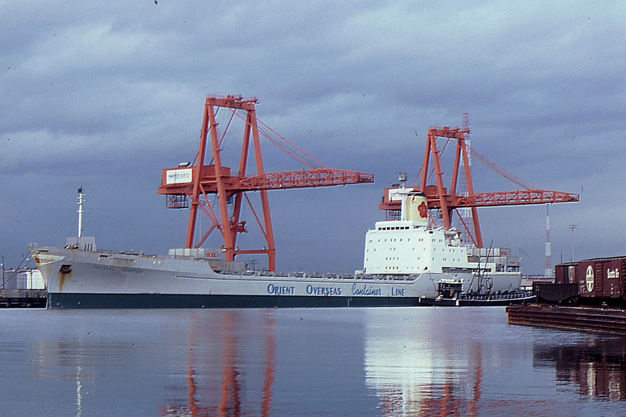 As ORIENTAL CHAMPION after conversion to fully containerised ship at Seattle 02.80