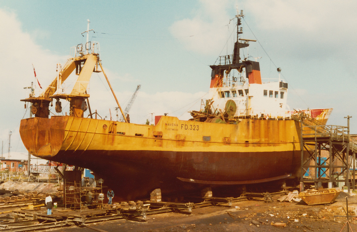 Marr's NAVENA, 393 gt, yard no. 1564, on the slip at Fleetwood 4/10/1980.