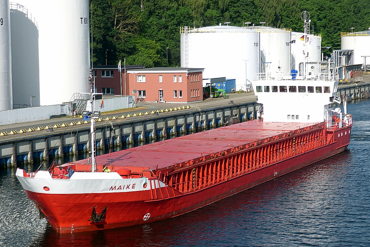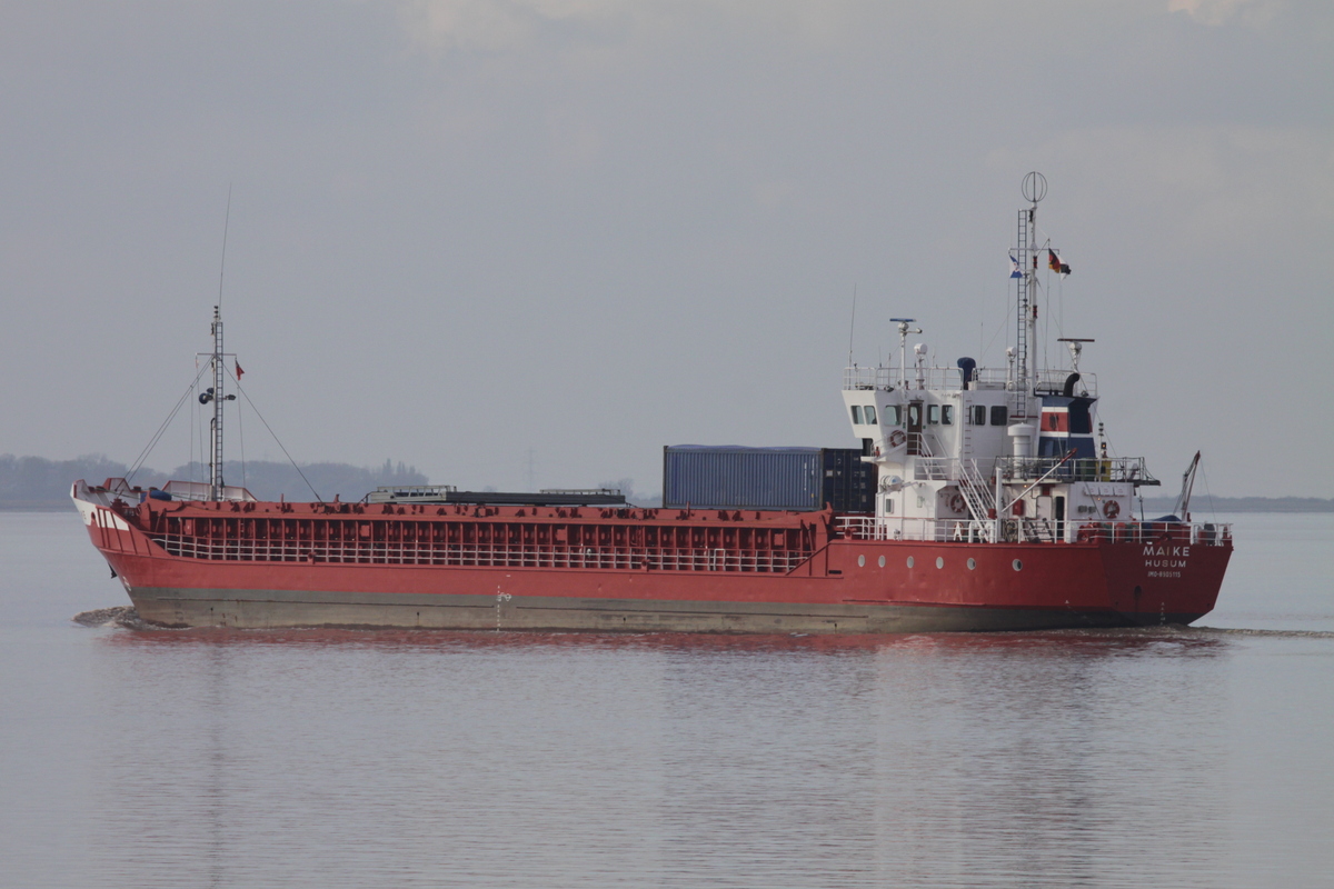 Husum-registed MAIKE passing the 32 float on Saturday afternoon inwards for Goole from her home port.