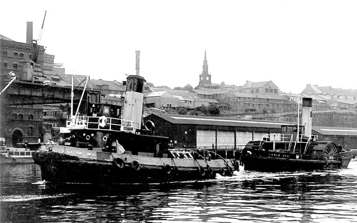 Kevin sent me another photo by John Johnson of tugs TIC TUG NO 2 and COBLE DENE heading up river past Newcastle Quay.
