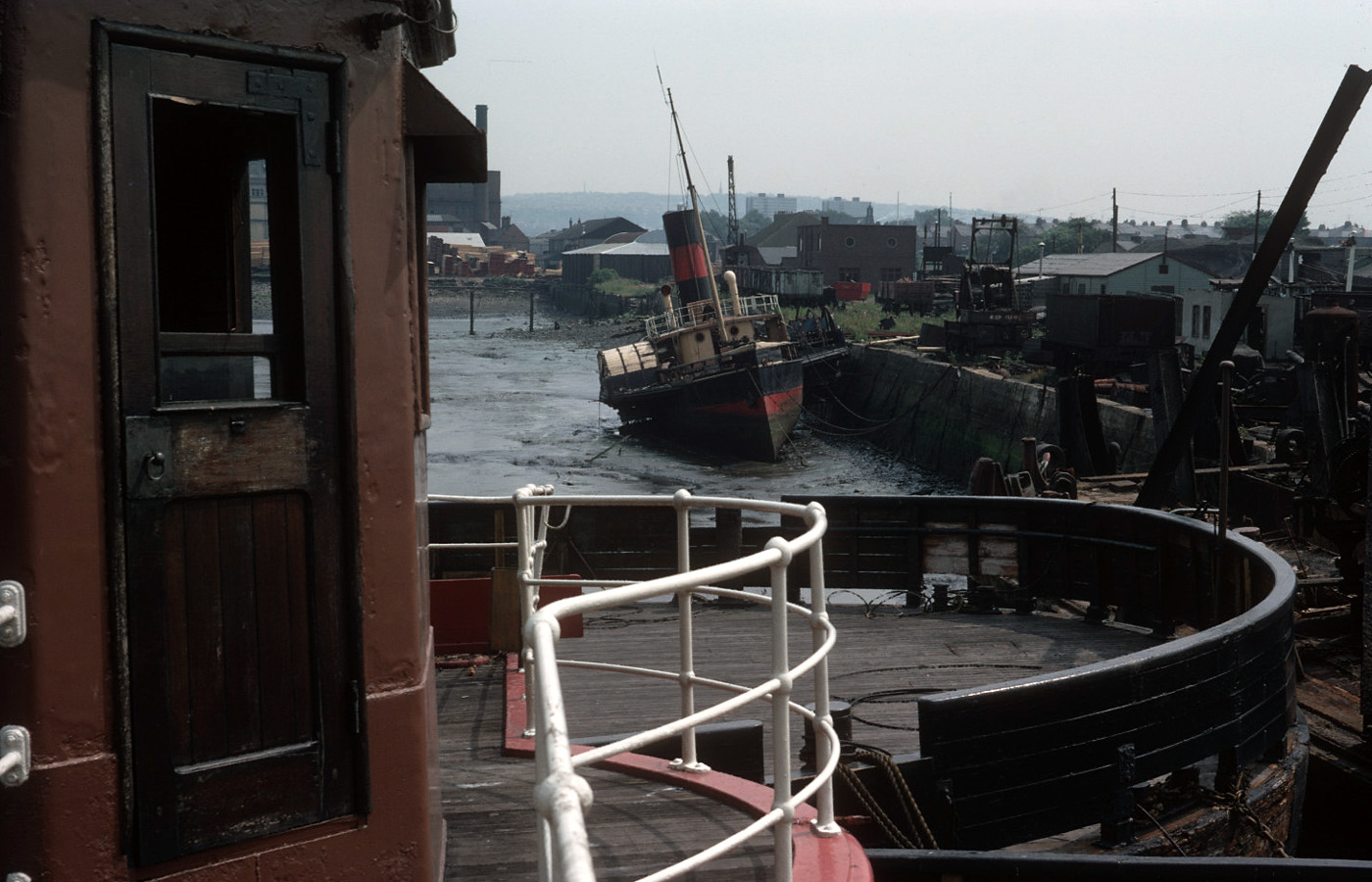 A view from July 1968 of the Dunston shipbreaking yard belonging to Clayton & Davie. The paddle tug Eppleton Hall is seen across the decks of the ferries SOUTH SHIELDS and TYNEMOUTH, of late operated by the Tyne Improvement Commission. Behind the camera were several fishing vessels awaiting the cutters torch.