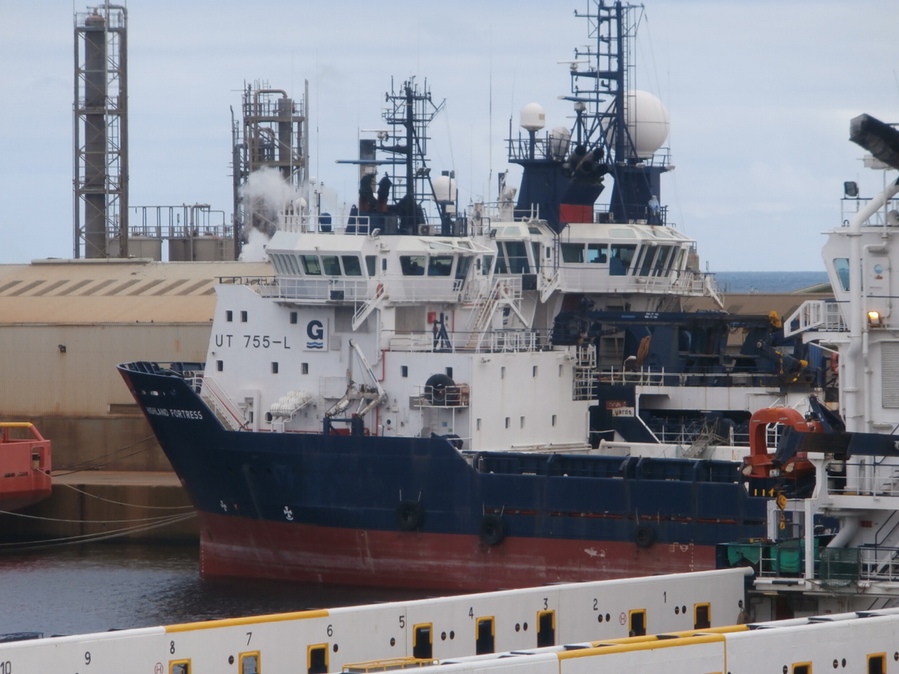 Walk back up to the railway line and follow it North. The line is fenced off on your left and the port soon appears fenced off to the right.