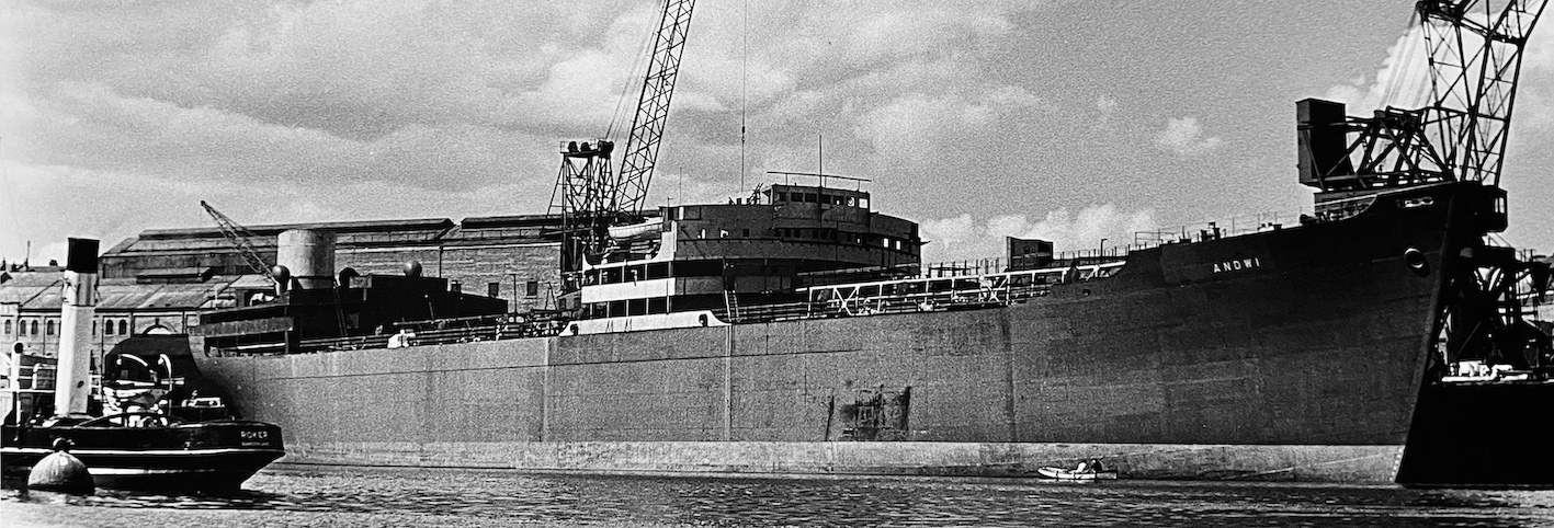 ANDWI: 12,315 dwt tanker by John Crown. for Kommandit Rolf Wigands Rederi, Bergen. Fore end launched January 1954, aft end launched 4th June 1954, joined in Dry dock. My Crowns list says launch 19.06.1954, so that might be the date the two halves were floated out of dry dock??? Broken up at bilbao as CTL after grounding.