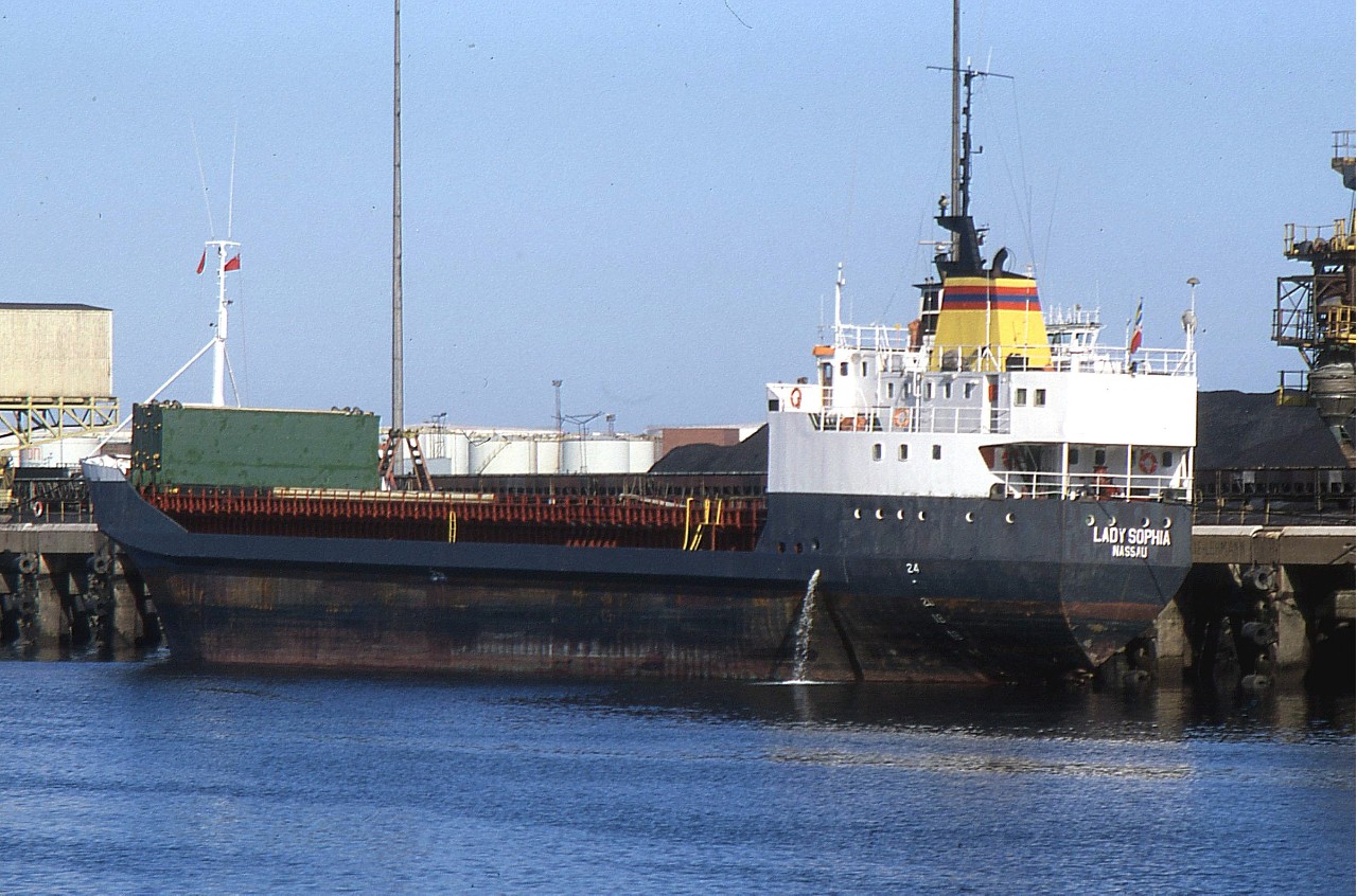 LADY SOPHIA hiding behind a pile of scrap in South Dock. Sorry no date on photo.