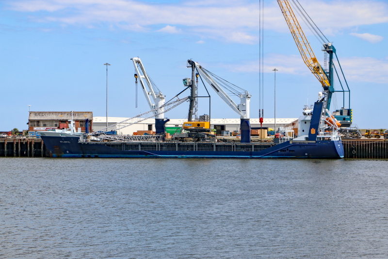 The Dutch coaster Atlantic, from Police/Groningen in 2011, loading expensive deck cargo at Sunderland this afternoon.