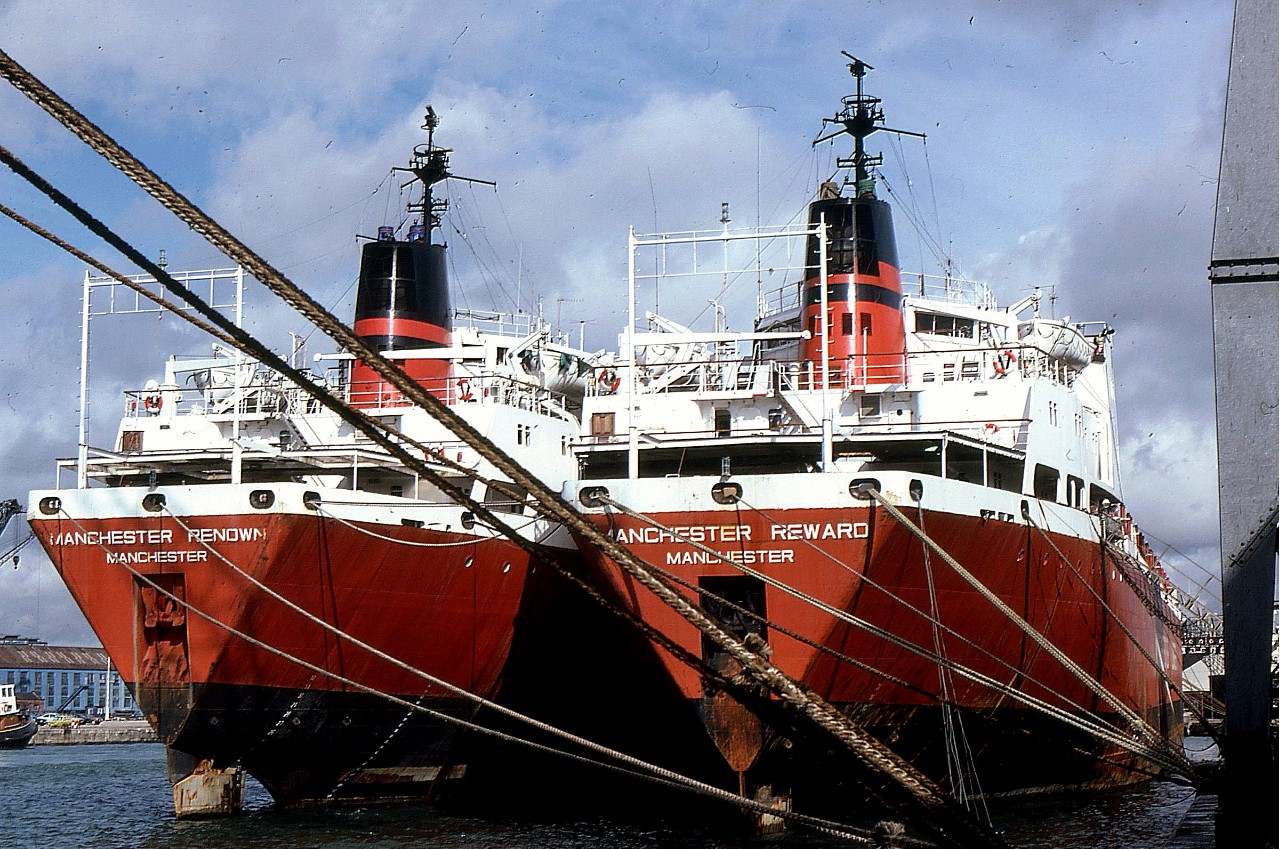 MANCHESTER RENOWN laid up at Southampton 09.03.82 and at Liverpool 12.05.81 alongside MANCHESTER REWARD