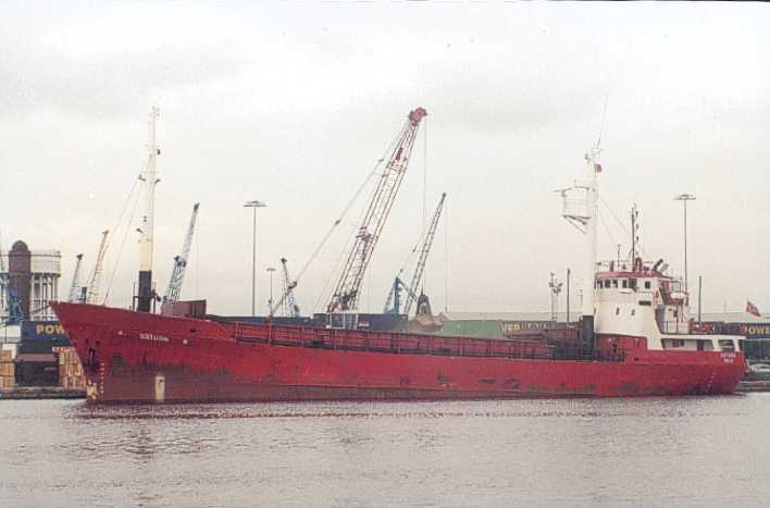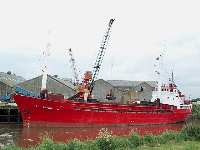 SATURN on the Tees 12.04.90 loading at Clarence Wharf,at this time she still had her derricks,and later a view of her without her gear at Glasson Dock 17.03.99
