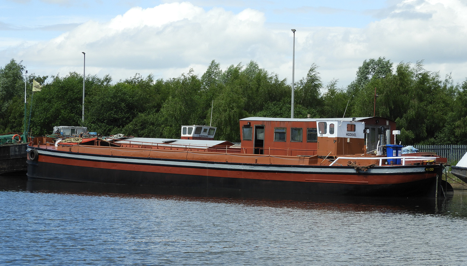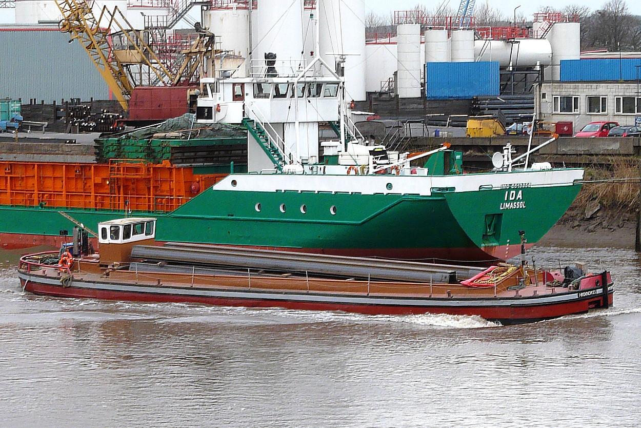 HIDDEKEL appeared to be floating in an oil patch that extended towards Timm's, wonder if anyone reported it to ABP! Maybe connected to that pipe over the side and seems to go down into the engine room.