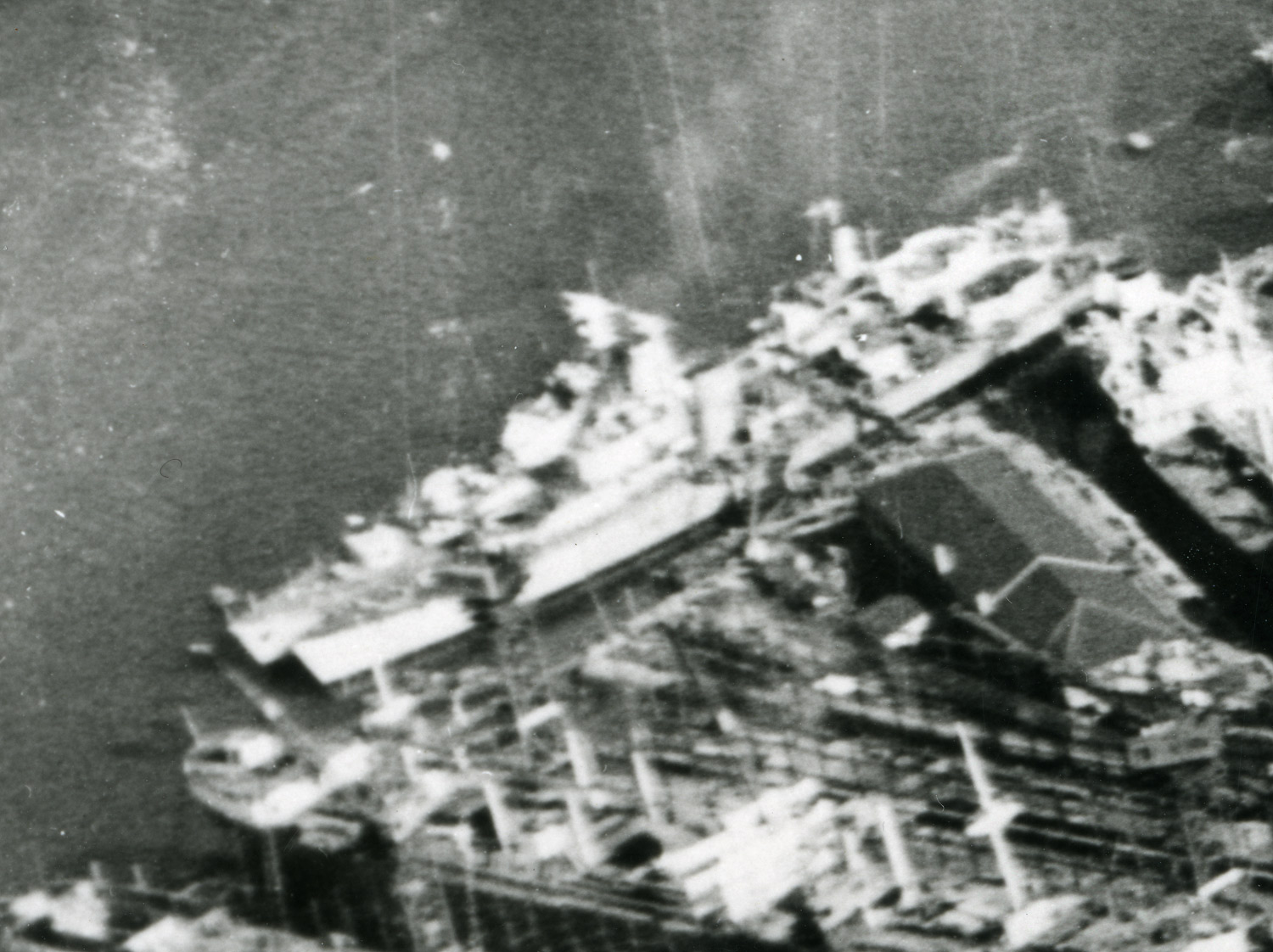 Sean, a very helpful observation which proves we did not look closely enough at this trio of vessels .... the two inside seem to be part-completed cargo vessels, there is a flat section in the centre one (just below the forward funnel of the white ship) which may be the base for her bridge structure. The inner one looks rather 'worn' so may be a repair job.