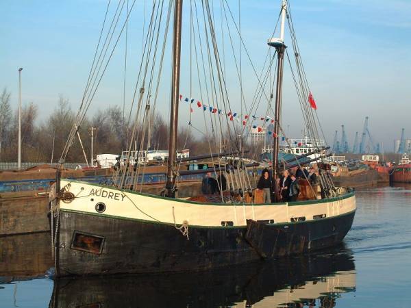 I can answer the old question, yes it is. AUDREY sailed extensively around UK and North Europe as a youth adventure boat but sadly had to be sold when underpinning grants became insufficient to cover her costs Photos below by myself and ex-pilot Steve