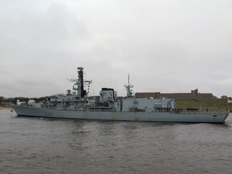 The Type 23 frigate Somerset, from Yarrows in 1996, entering the Tyne this afternoon.