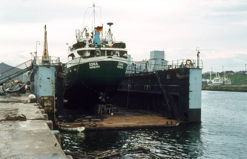 Edna, built by Sietas at Neuenfelde in 1958 as Thyra Behrens, in the Hudson Dock on 7 June 1981.