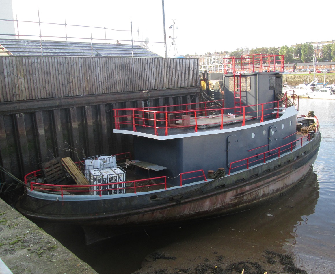 G.M. Taximan, from photographs I have seen of the other stripped out ex American Tugs from Hythe they can make a nice live aboard conversion. Are they planning to keep her moored at Whitby after completing the conversion or have her towed back to Hartlepool Marina? Ron@2.