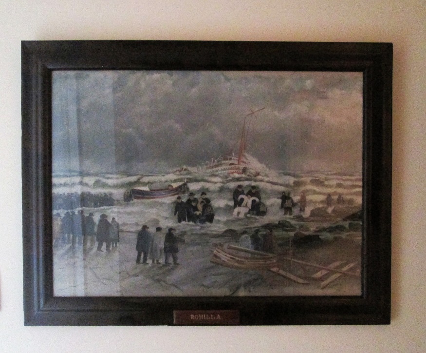I have just been given a painting of the hospital ship Rohilla which may be of interest to some members, A friend was on his way to the council tip with it in his boot, It is no real work of art but I felt it was worth rescuing. On the back is a 'recent' note which reads, "Painted for Mr James Speechley who was proprietor of the Black Swan at Whitby at the time of the Rohilla disaster. He was my Grandfather. signed S Powell 25/2 /14