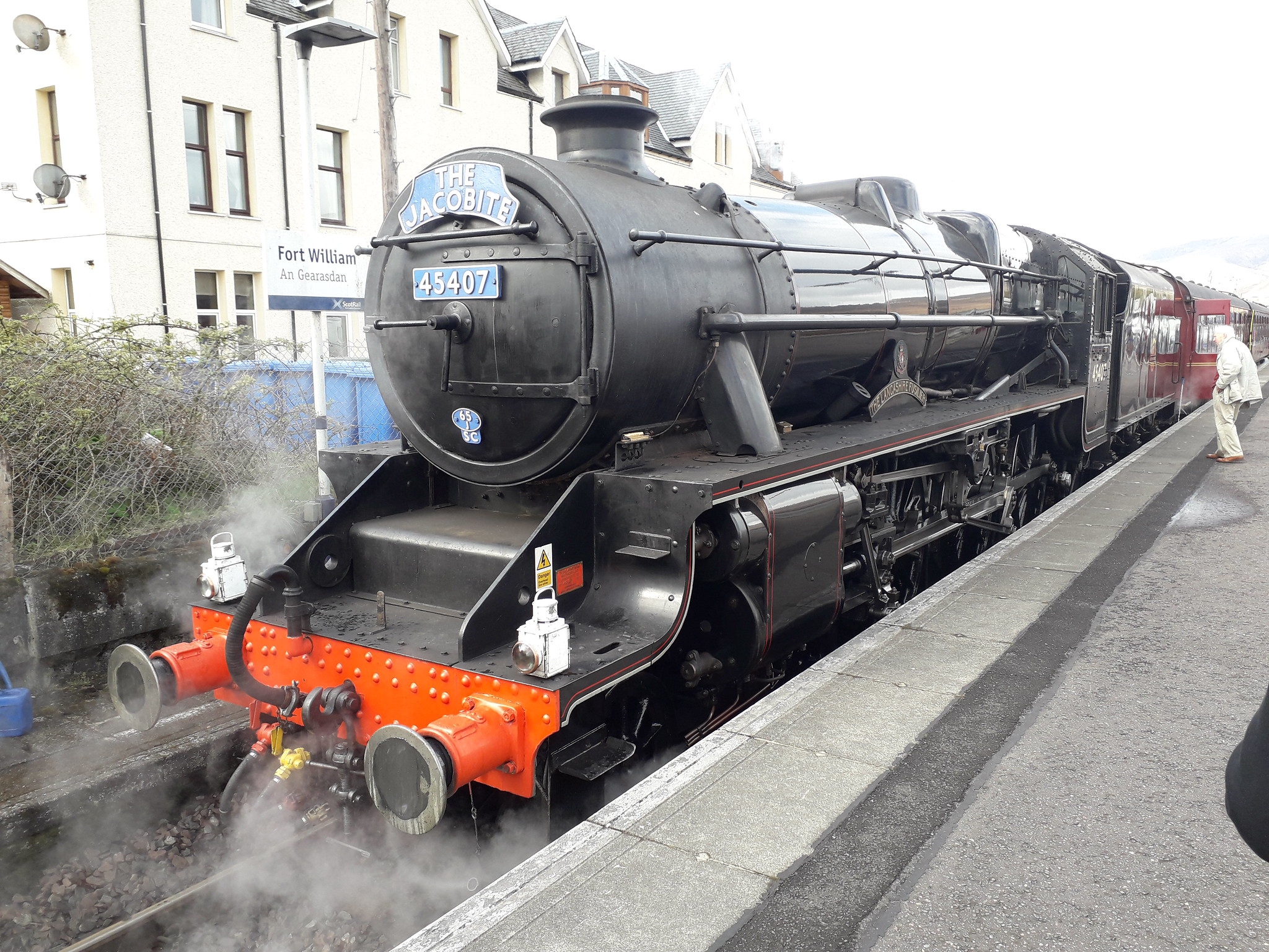 The LMS locomotive (4-6-0) 45407 “The Lancashire Fusilier” (LMS 5407) was built in 1937 in Scotswood, Newcastle. She is seen here passing through Ferryhill on March 7th, 2015 hauling “The Hadrian” with the LMS Jubilee Class number 45690 “Leander” in tow.