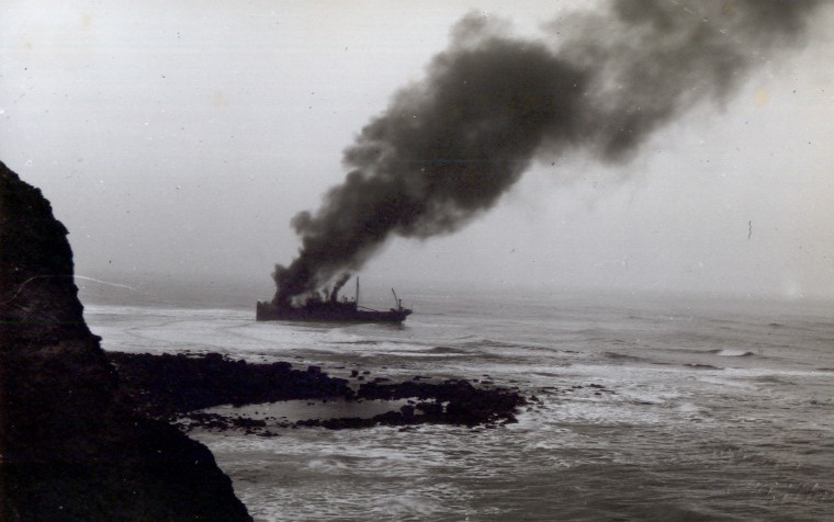 The Swedish vessel LUCY went aground near Kettleness on either the 25th (Larn) or the 28th (Whitby in Old Picture Postcards) of December 1930. Some fifteen months later on the 22nd March 1931 the Lucy was burnt out at Sandsend, Whitby, which is when the picture was taken.